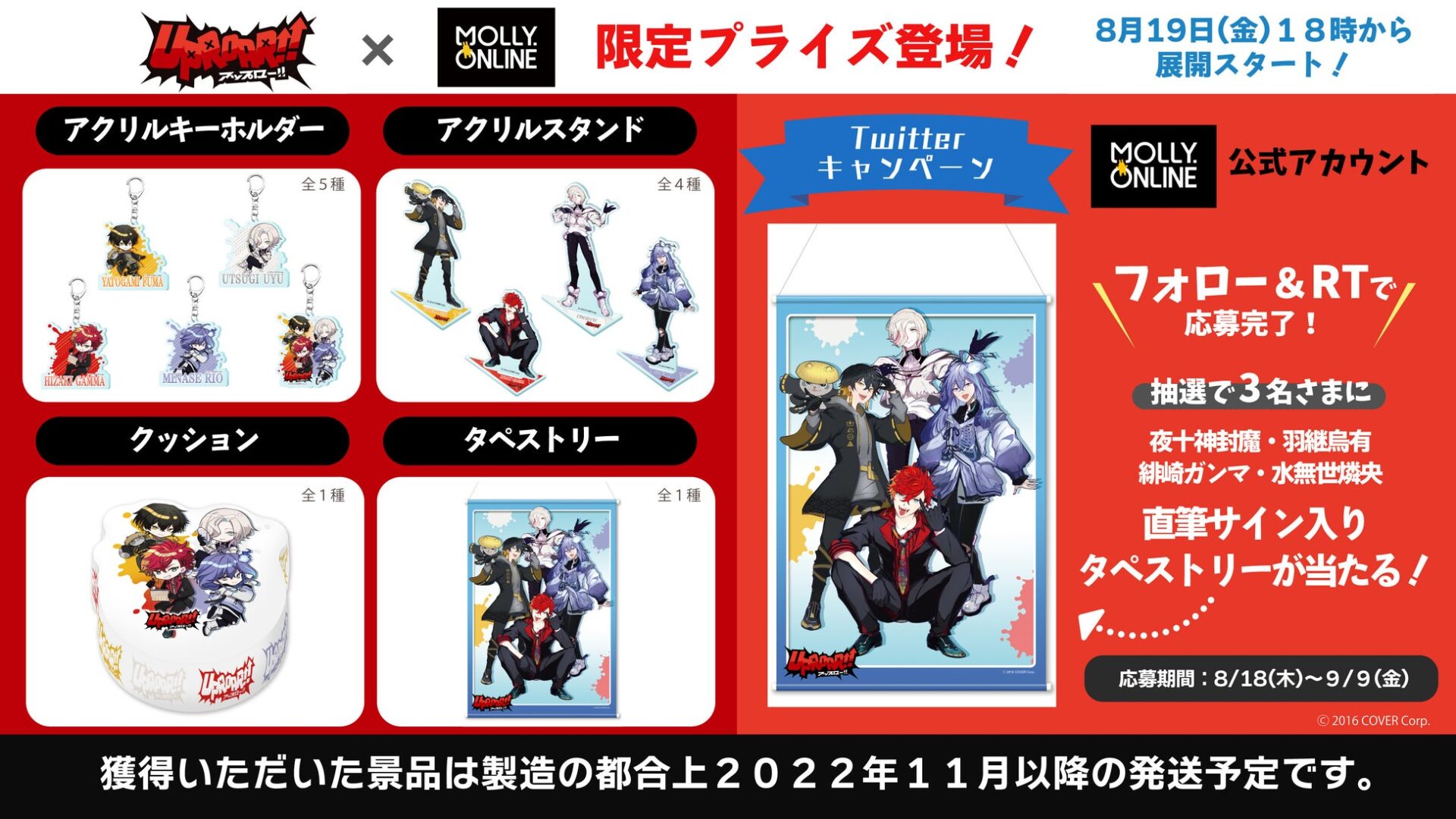 「夜十神封魔」「羽継烏有」「緋崎ガンマ」「水無世燐央」コラボ限定プライズ(モーリーオンライン限定)