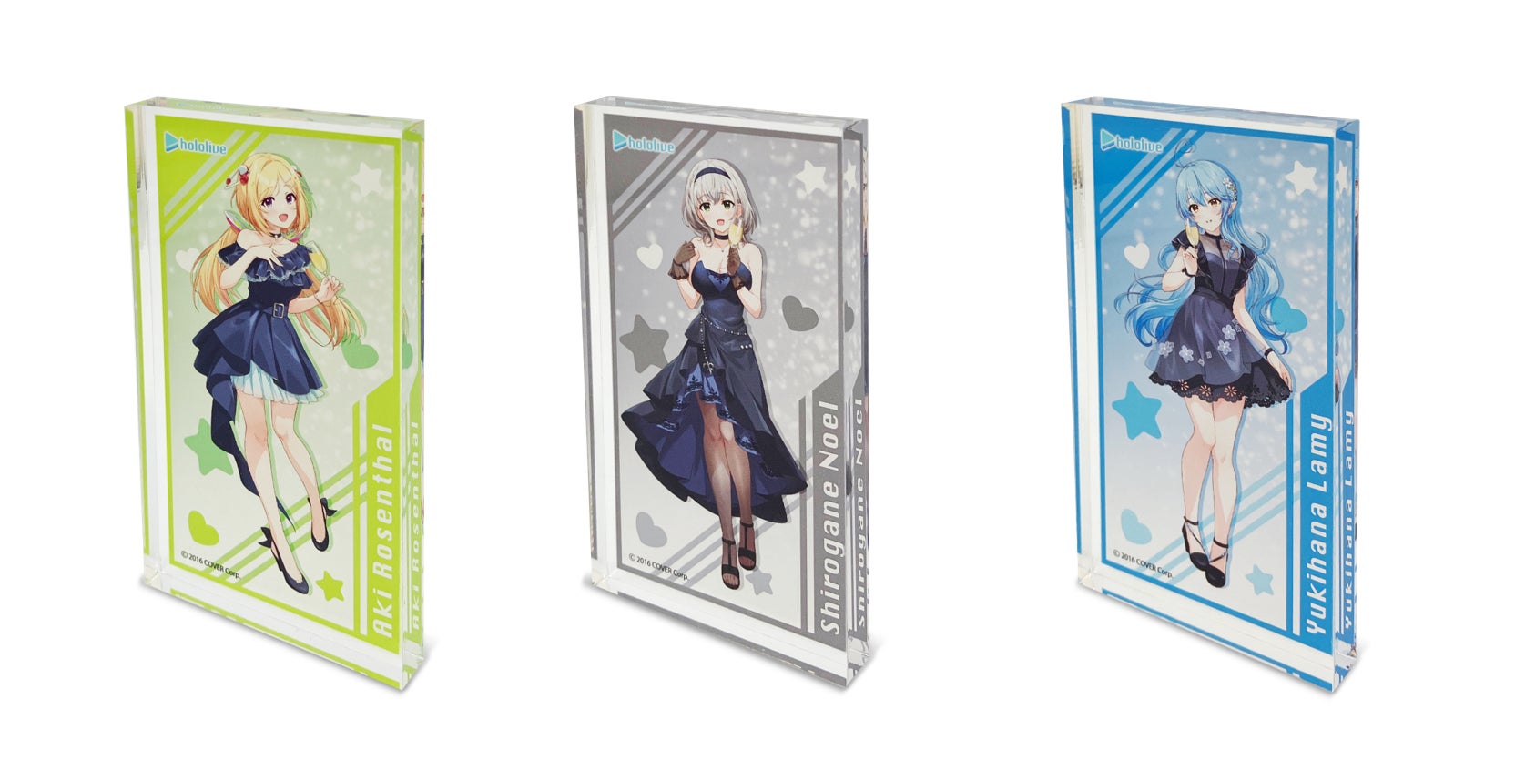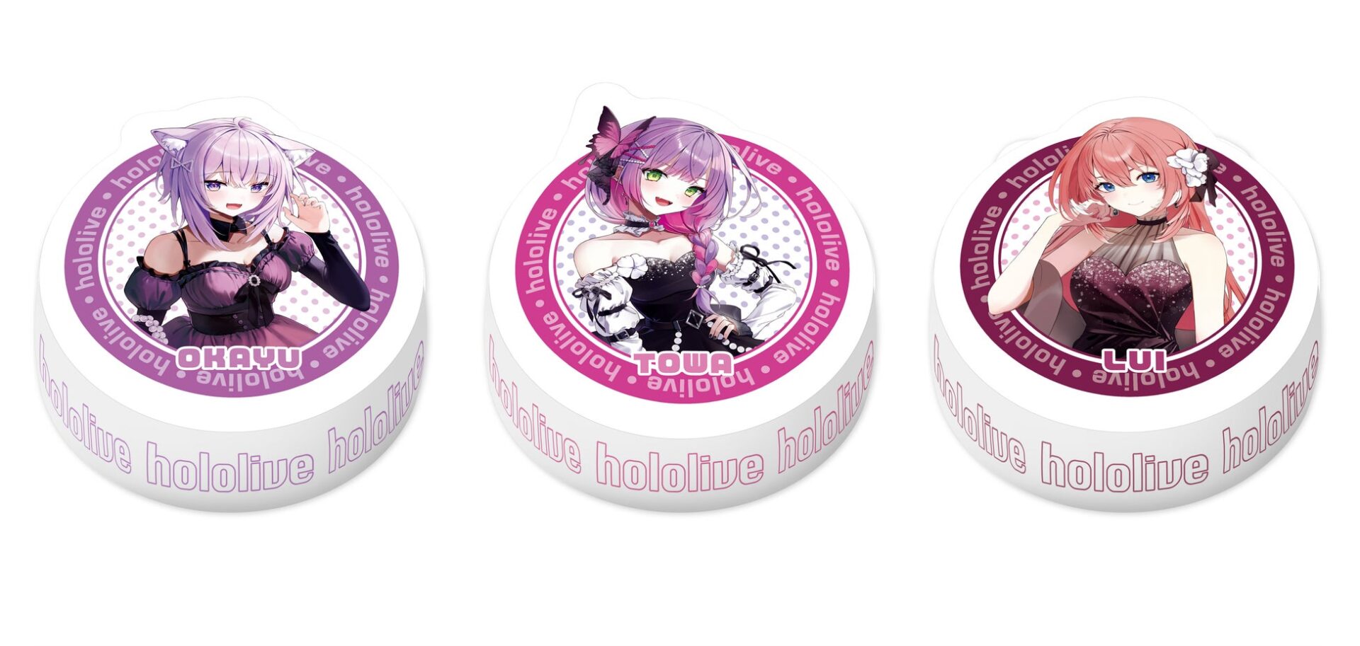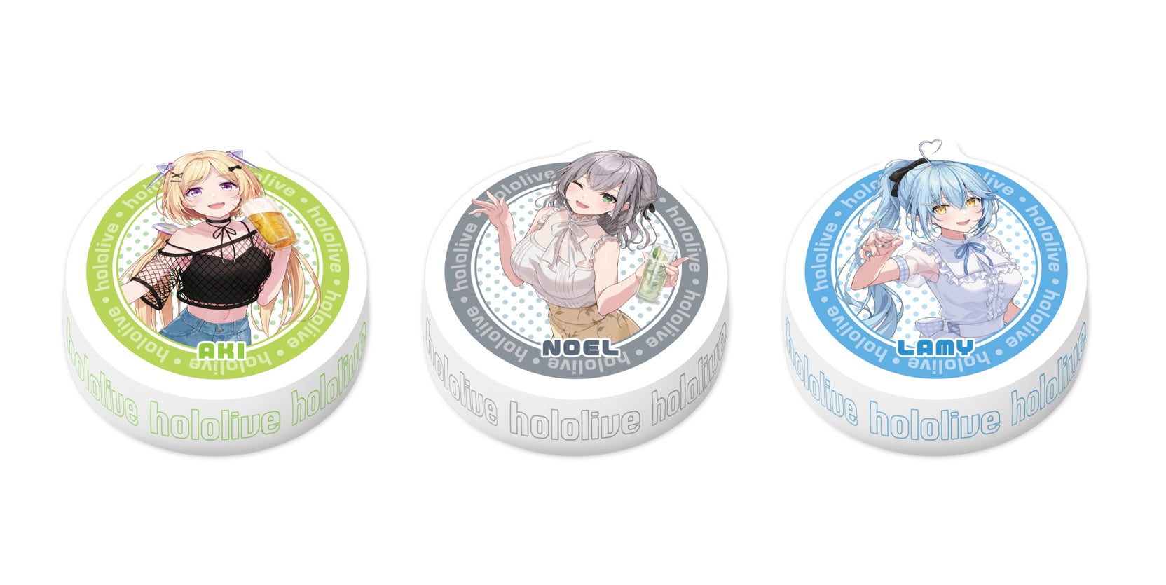 - 種類:全3種(アキ・ローゼンタール、兎田ぺこら、姫森ルーナ)