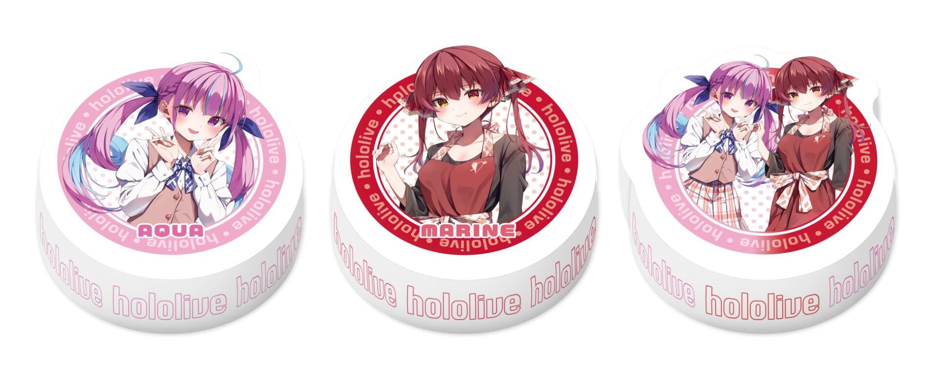 - サイズ:縦7cm×横7cm×厚さ0.3cm(湊あくあ、紫咲シオン)、縦6.5cm×横7cm×厚さ0.3cm (ペア)