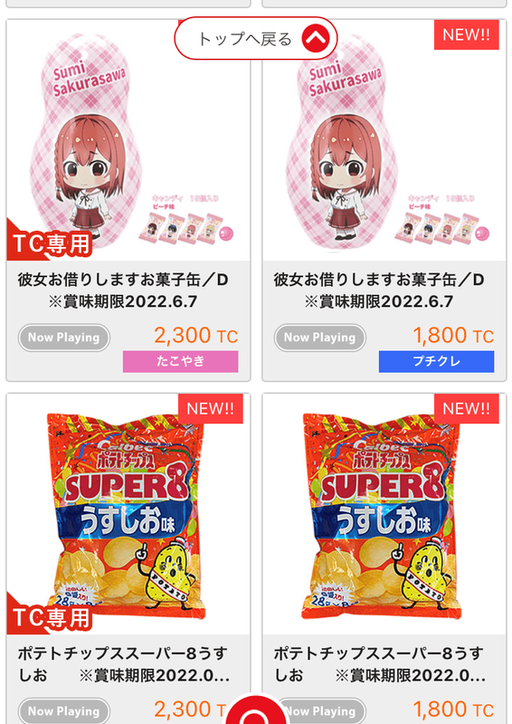 オンラインクレーンゲームの中にはぬいぐるみやフィギュアといった定番景品以外にも、食品系やお菓子・駄菓子などを扱ってる場合があり、クレーンゲームは好きだけど雑貨・フィギュアやぬいぐるみ取っても置く場所がないとか興味が無いという方には食品・お菓子といった消費出来る景品はオススメのプライズです。